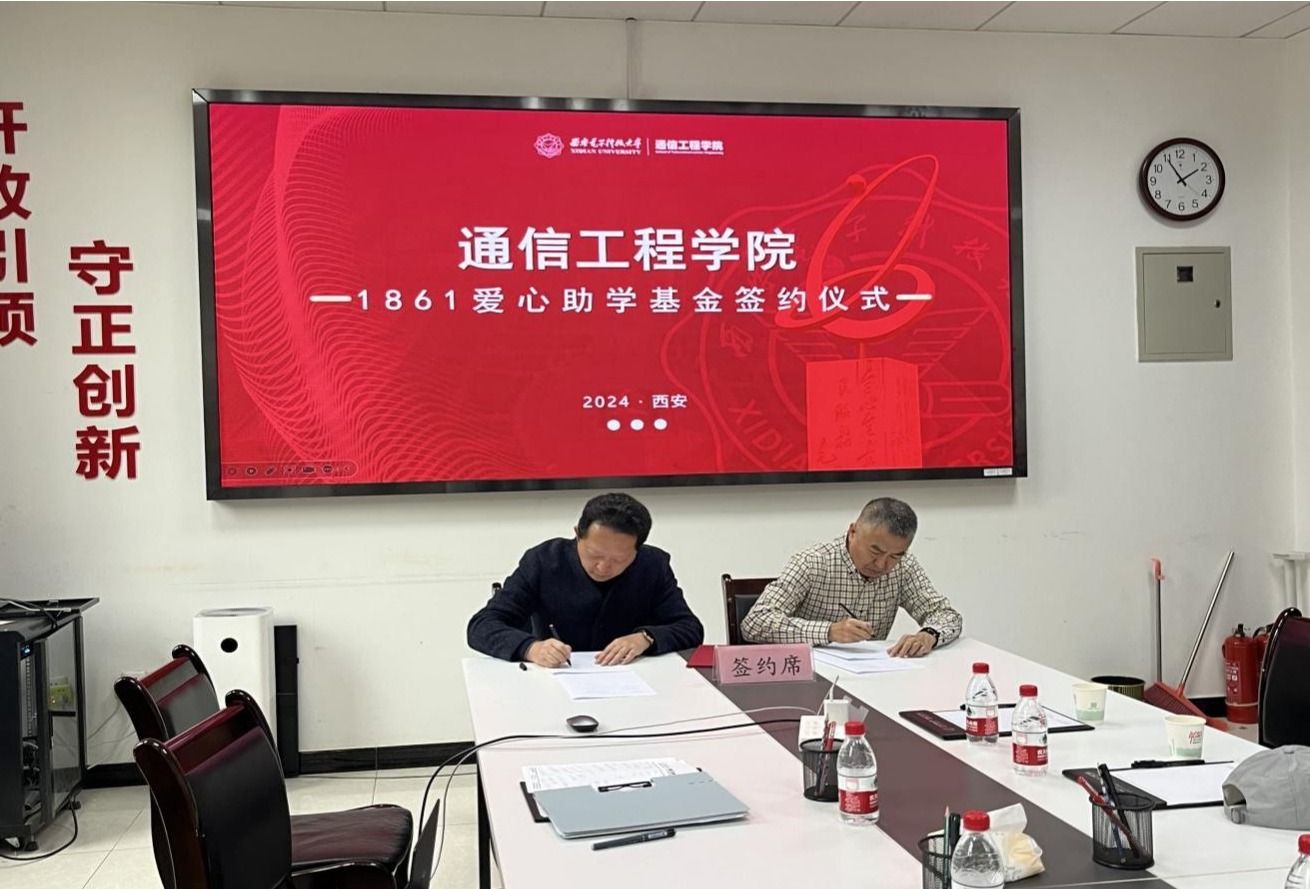 (通讯员 王同达) 11月17日下午,“西电通院1-861助学基金”签约仪式于北校区主楼207会议室顺利举行。必赢bwin官网登录入口执行院长李云松,通院1-861班校友代表吴永清、陈劲、程立新、郑为民出席本次活动,仪式由院党委副书记主持。