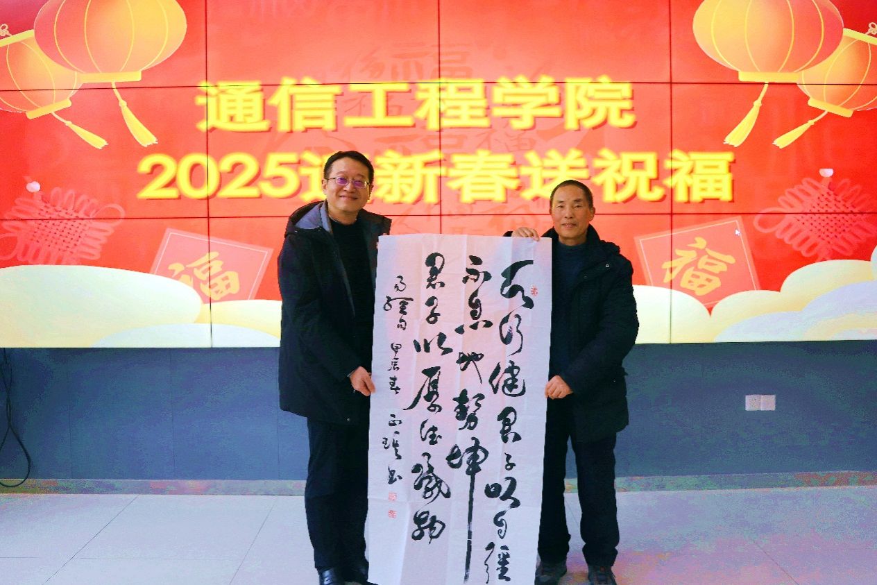 活动的高潮部分,姚正琪老师慷慨地向学院赠送了一幅精心创作的书法作品。这幅作品不仅字体遒劲有力,而且寓意深远,寄托了姚老师对学院未来发展的美好祝愿和对全体教职工的深切祝福。学院领导代表全体教职工接受了这份珍贵的礼物,并表示将把这份祝福传递给每一位师生,共同迎接一个充满希望与美好的春天。