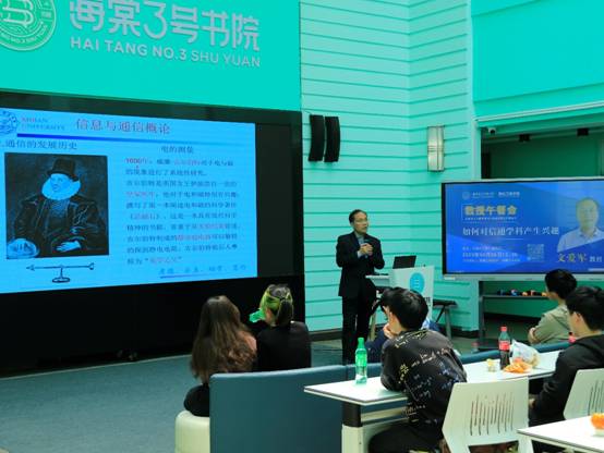 (通讯员 许嘉伟)学海无涯,良师引航。为持续推进双院育人,打通南北校区育人资源,帮助学生了解学科和专业前沿,4月26日,必赢bwin官网登录入口第十二期教授午餐会在海棠3号书院成功举办。必赢bwin官网登录入口教授、博士生导师文爱军以《如何对信通学科产生兴趣》为题展开了精彩分享。必赢bwin官网登录入口2022级全体本科生辅导员和海棠3号书院近百名学生参加活动。