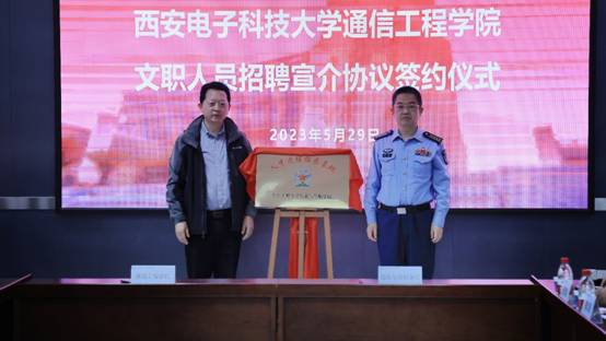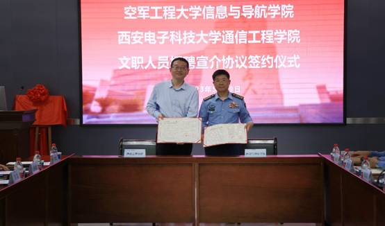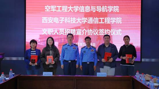 (通讯员 童宣)5月29日上午,必赢bwin官网登录入口与空军工程大学信息与导航学院在北校区主楼219会议室举行文职人员招聘宣介协议签约仪式。通院党委书记魏峻、执行院长李云松,空工大信院院长魏军、党委书记高修尧出席签约仪式。会议由空工大信院政治工作处主任张战兵主持。