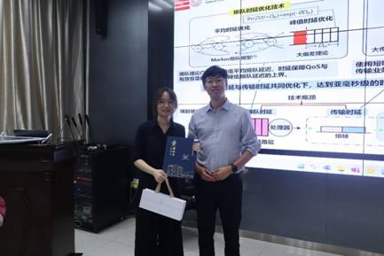 下午的通信大讲堂由三位老师进行学术交流分享。其中,沈中老师进行了题为《高性能无线邻节点发现技术研究》的分享,杨清海老师介绍了《移动边缘智能的云边端协同学习与适配技术》的内容,王婧青老师讲解了《面向URLLC+的多源异构QoS跨层联合优化技术》。分享结束后,封鹏飞也为他们分别颁发证书和伴手礼。本次活动圆满落下帷幕。
