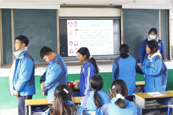 黄星月同学带领的心理辅导小组在课程之初组织学生们开展“情绪传递”的小游戏,让大家了解到情绪和心理健康的重要性。之后,支教小组帮助学生掌握排解负面情绪、乐观地看待生活的方法,并引导学生从负面情绪中汲取教训,纠正自身缺点。