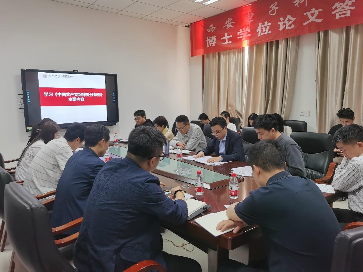 为进一步增强学习贯彻新修订的《中国共产党纪律处分条例》(以下简称《条例》)的政治自觉和思想自觉,教育引导全体党员强化纪律意识,严守纪律规矩,4月23日下午,必赢bwin官网登录入口应急通信科研团队师生党支部组织全体党员开展“学条例 守党纪 明规矩 强党性”主题党日活动,切实把《条例》的学习宣传贯彻作为当前一项重要任务抓实抓好,营造学纪、知纪、明纪、守纪的浓厚氛围,学院党委书记魏峻出席此次主题党日活动。