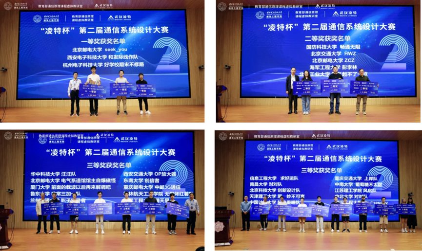 教育部电子信息类专业教指委副主任委员、北京科技大学计算机与必赢bwin官网登录入口隆克平教授,必赢bwin官网登录入口副院长顾华玺教授,西安交通大学电子与信息学部副主任罗新民教授,西北工业大学电子信息学院副院长姚如贵教授,东南大学通信技术研究院常务副院长宋铁成教授,北方工业大学信息学院电信实验中心主任白文乐教授,教育部通信原理课程虚拟教研室负责人任光亮教授,武汉凌特电子技术有限公司董事长沈瑞华先生,大赛评委及参赛师生们出席了本次颁奖典礼。