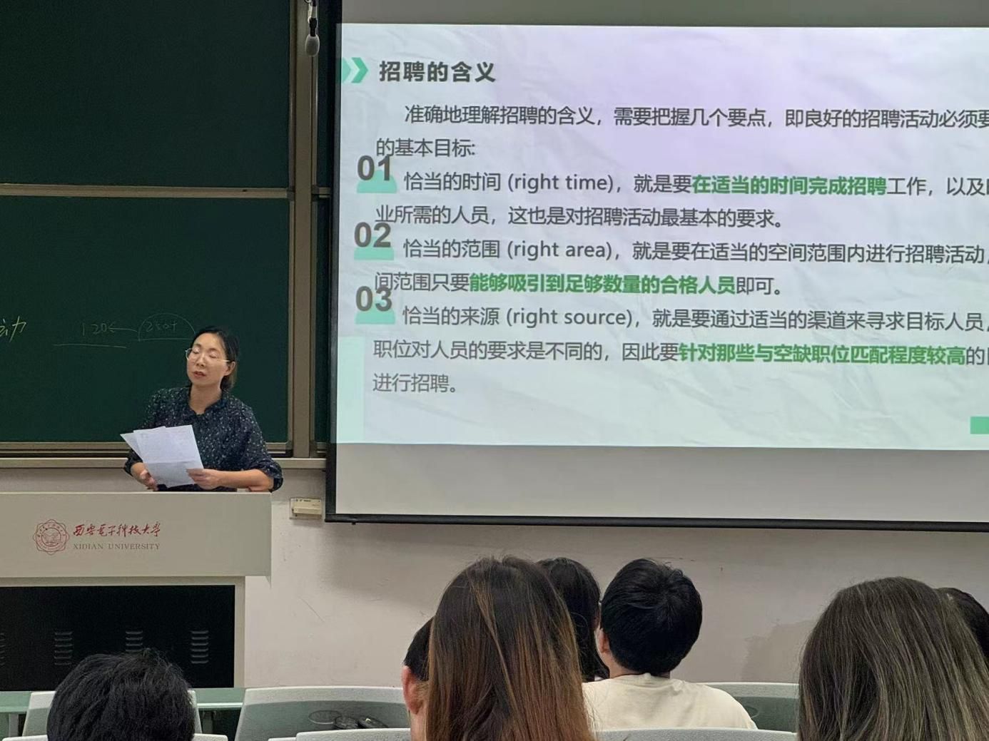 最后,詹老师详细阐述了招聘的含义,强调招聘不仅仅是简单的人员挑选,而是一个系统化、目标明确的过程。她指出,企业在进行招聘时,要先确保在恰当的时间完成,以满足业务发展的需求,而且招聘活动应在恰当的范围内展开,即在足够广泛的范围内吸引到合格的候选人,还需通过恰当的来源来锁定合适的人才,确保他们与职位要求高度匹配。詹老师还特别提到,不同的职位有不同的要求,因此招聘者必须根据岗位需求,通过适合的渠道寻找具备相应能力的候选人。招聘的成功在于精准匹配,这不仅提升了招聘效率,还能确保企业找到最符合要求的人才。
