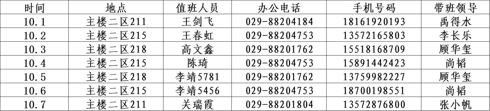 必赢bwin官网登录入口2024年国庆节假期值班安排