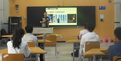林老师先从学习理论知识切入,和同学们分享自己的影像作品,古朴的戏剧、奇幻的云上芭蕾、还有浪漫的樱花雨,一张张生动的照片激发起大家浓厚的拍摄热情。考虑本科生中大部分学生以手机为主要拍摄工具及日常拍摄需求,林老师主要讲授手机拍摄和人像摄影技巧,示范如何选取拍摄位置,并和同学们交流讨论手机拍摄过程中存在的问题。